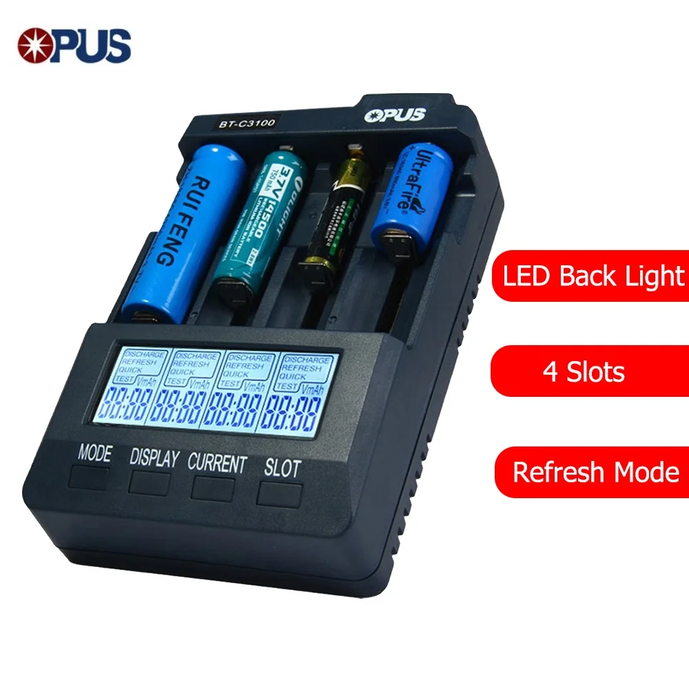 Best Seller Opus BT-C3100 V2.2 Smart Digital Intelligent 4 LCD Slots Universal Battery Charger For Rechargeable
