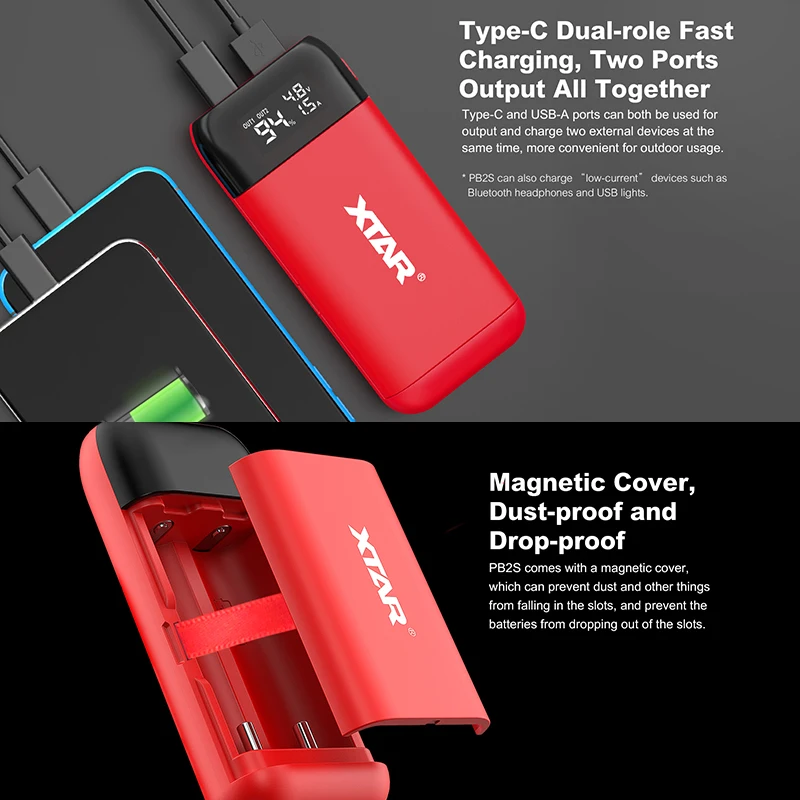 XTAR Charger PB2S Power Bank Black Red Blue Portable USB Charger QC3.0+PD3.0 Fast Charging Battery Charger 18650 Power Bank