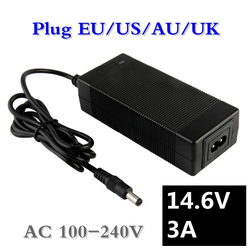 14.6V Smart Intelligent Charger 2A for 4S 12.8V LiFe LiFePO4 Battery Pack EU/US/AU/UK Plug