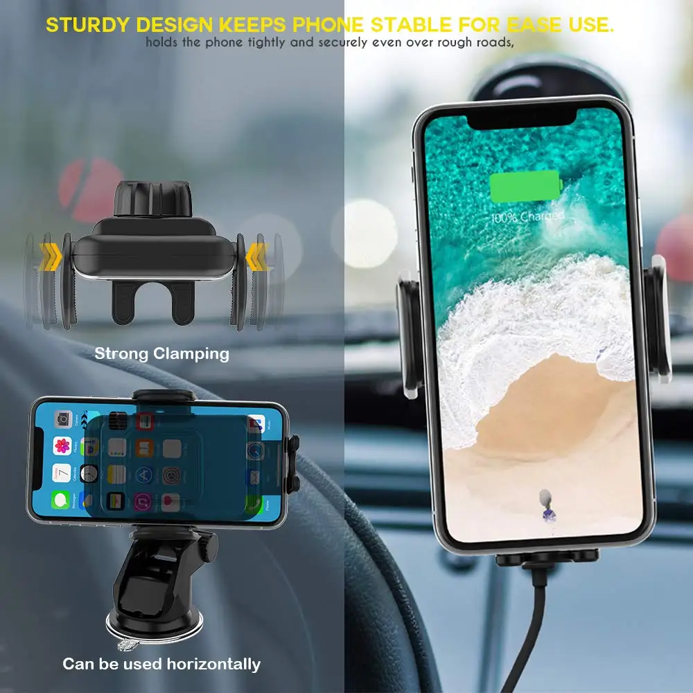 10W Qi Wireless Car Charger Automatic Car Wireless Charger Fast Wireless Charging Auto-Clamping Car Phone Holder For iPhone Xs