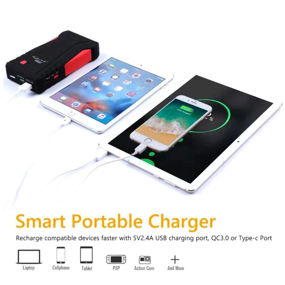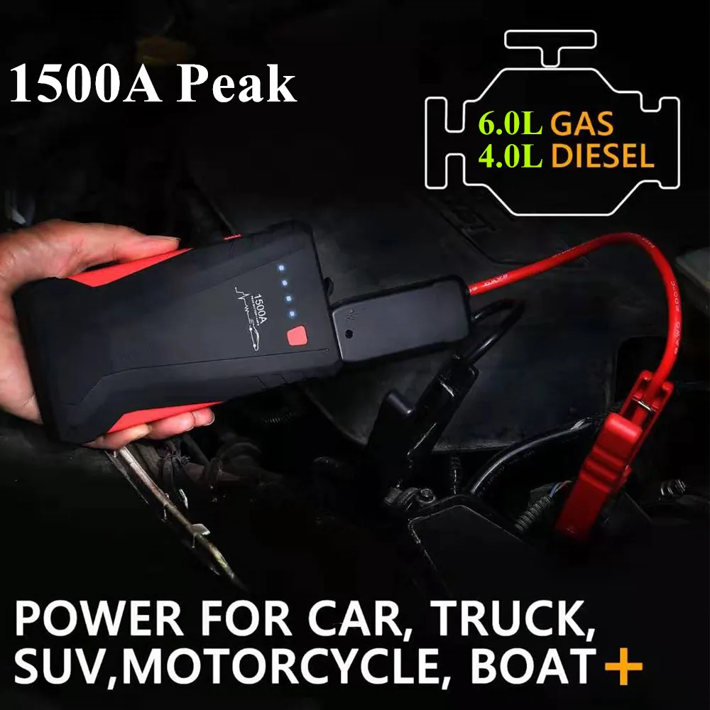 High Capacity 1500A Starting Device 12V Car Jump Starter Power Bank Petrol Diesel Car Charger For Car Battery Booster Buster LED