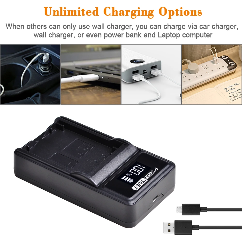 PowerTrust 2Pcs BLH-1 BLH1 BLH 1 Replacement Battery and LCD USB Dual Charger for Olympus E-M1 Mark II Camera