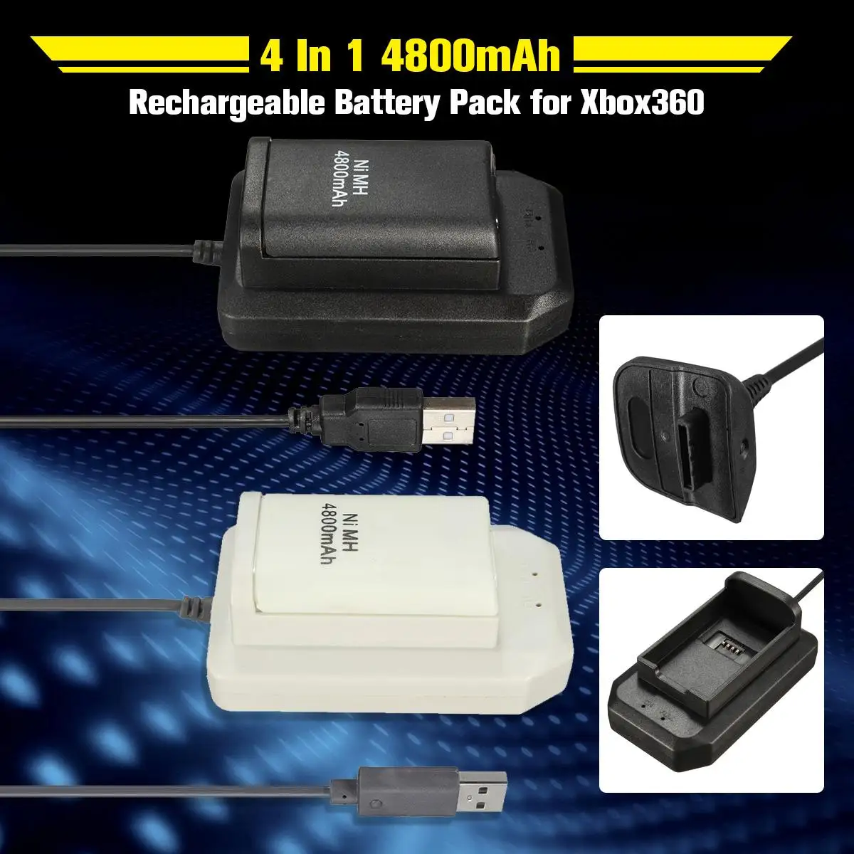 Best Seller 4800mAh 4 In 1 Rechargeable Battery Pack Batteries+Charger+USB Cable Charging Kit For Xbox 360 Batt