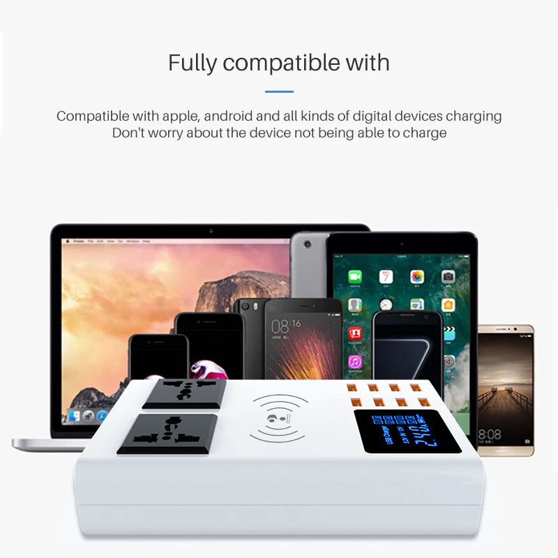 Best Product 8 Ports QI wireless fast charger quick charge station led display mobile phone wall usb charger for