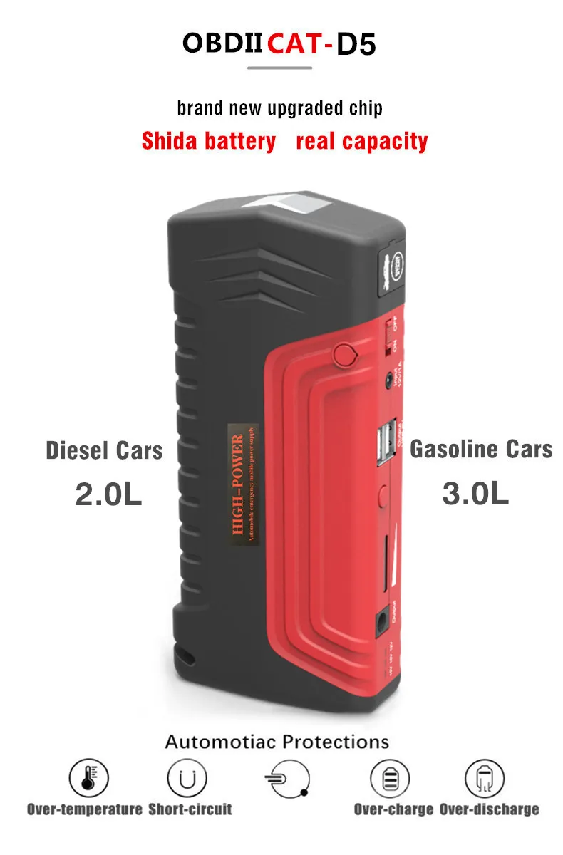 OBDIICAT-D5 Car Jump Starter Starting Device Battery Power Bank Jumpstarter Auto Buster Emergency Booster Car Charger Jump
