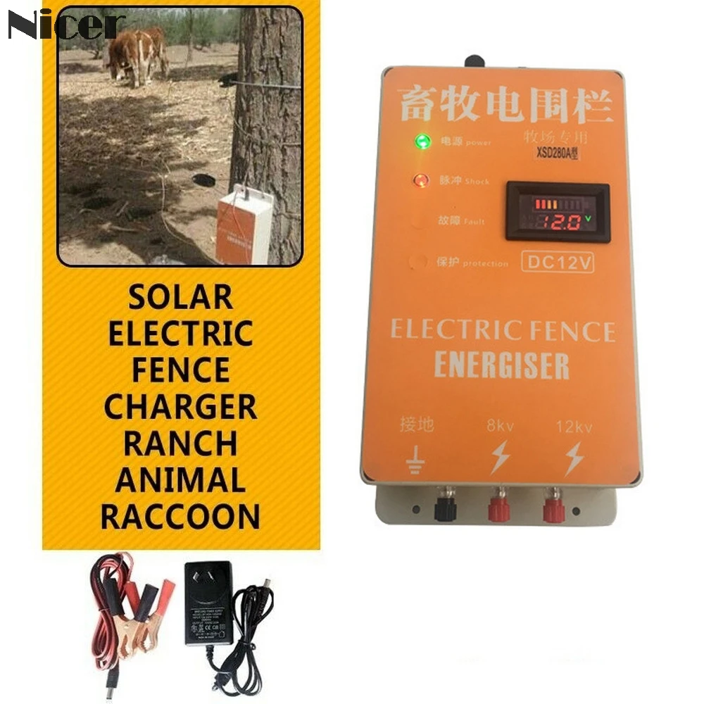 20KM Solar Electric Fence Energizer Charger Controller Animal Raccoon Sheep Horse Cattle Poultry Farm Electric Fencing Shepherd
