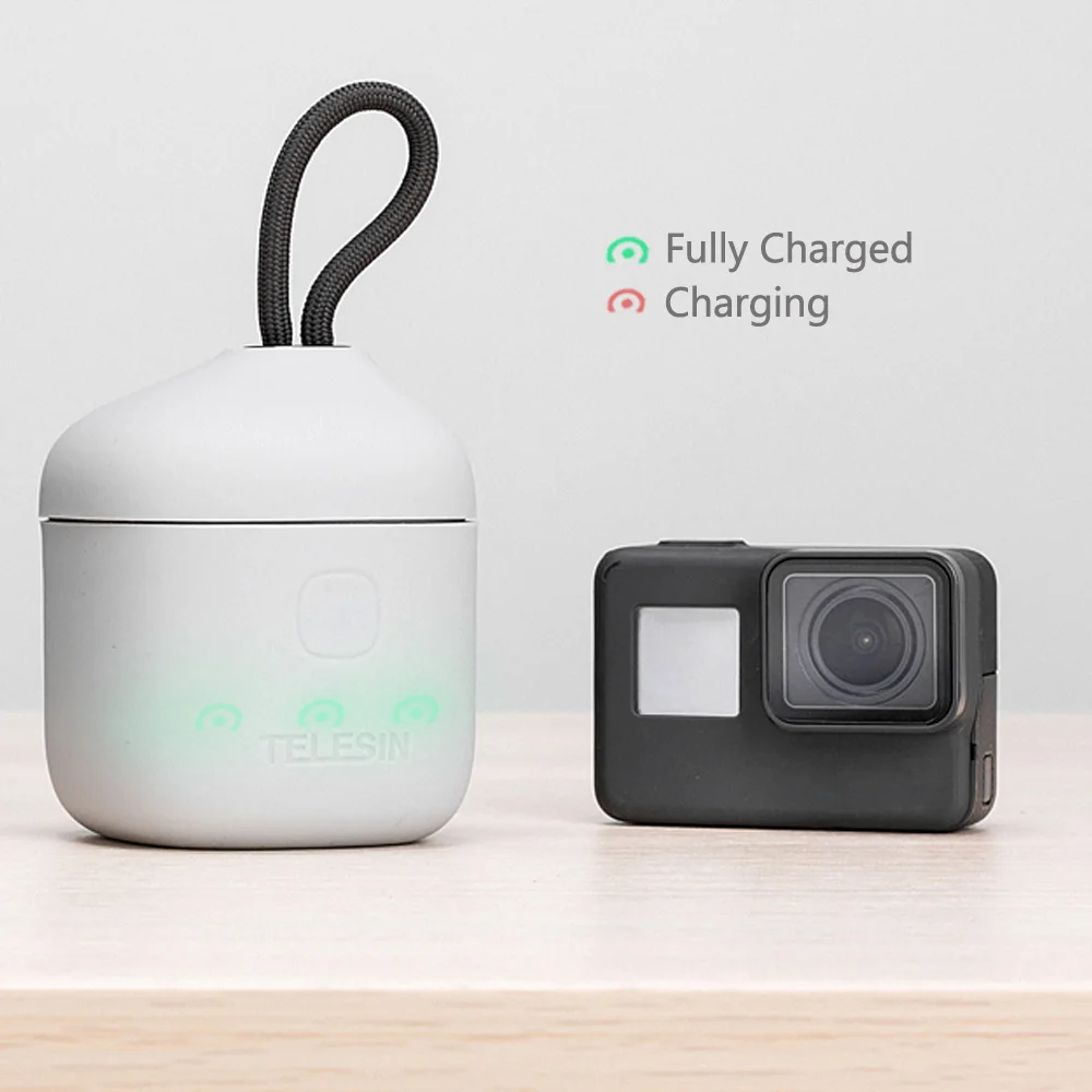 TELESIN 3PACK Battery 3 Slots Charger Set TF Card Reader Storage Charging Box for Gopro Hero 8 7 Black Hero 6 Hero 5
