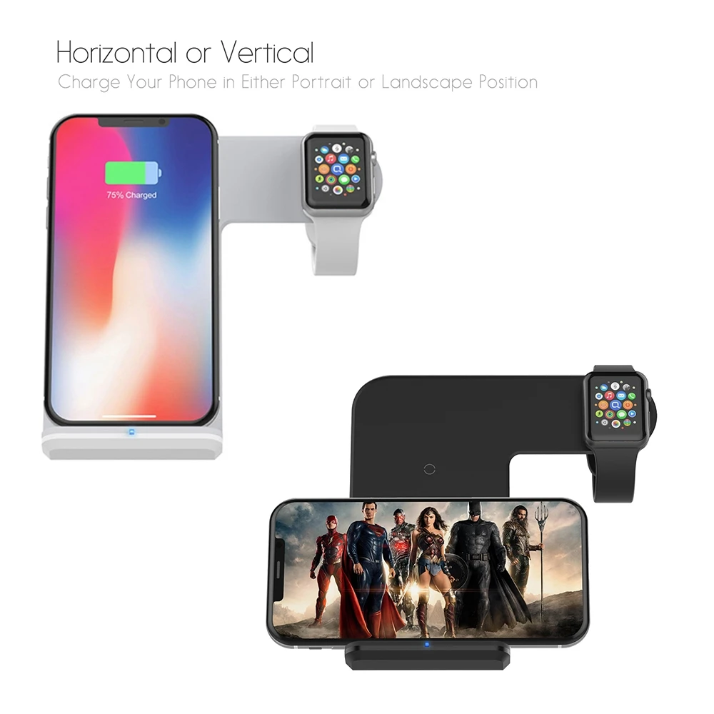 FDGAO Qi Wireless Charger Stand for iPhone 11 Pro X XS Max XR 8 Airpods Apple Watch iWatch 10W Fast Charging 2 in 1 Dock Station