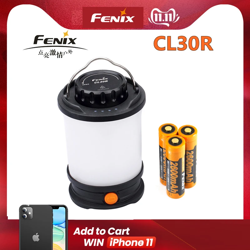 Buy Now Fenix CL30R Camping light Max 650 Lumens Micro-USB rechargeable Lantern with 3 PCS 2600mAh 18650 Li