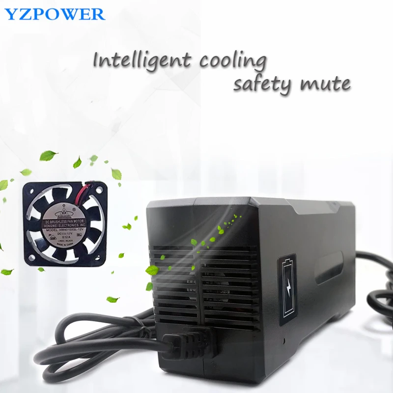 YZPOWER Auto-Stop 42V 8A Lithium Battery Charger For 36V Li-Ion Lipo Battery Pack Cooling with Fan Inside Aluminum Case