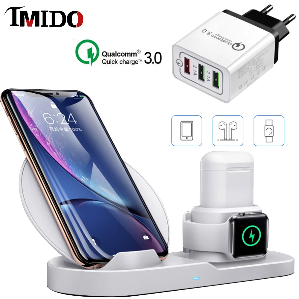 10W QI Fast Wireless Charger Stand for iPhone 11 AirPods Watch Series 4/3/2/1 QC3.0 USB Quick charger for Oneplus Xiaomi Samsung