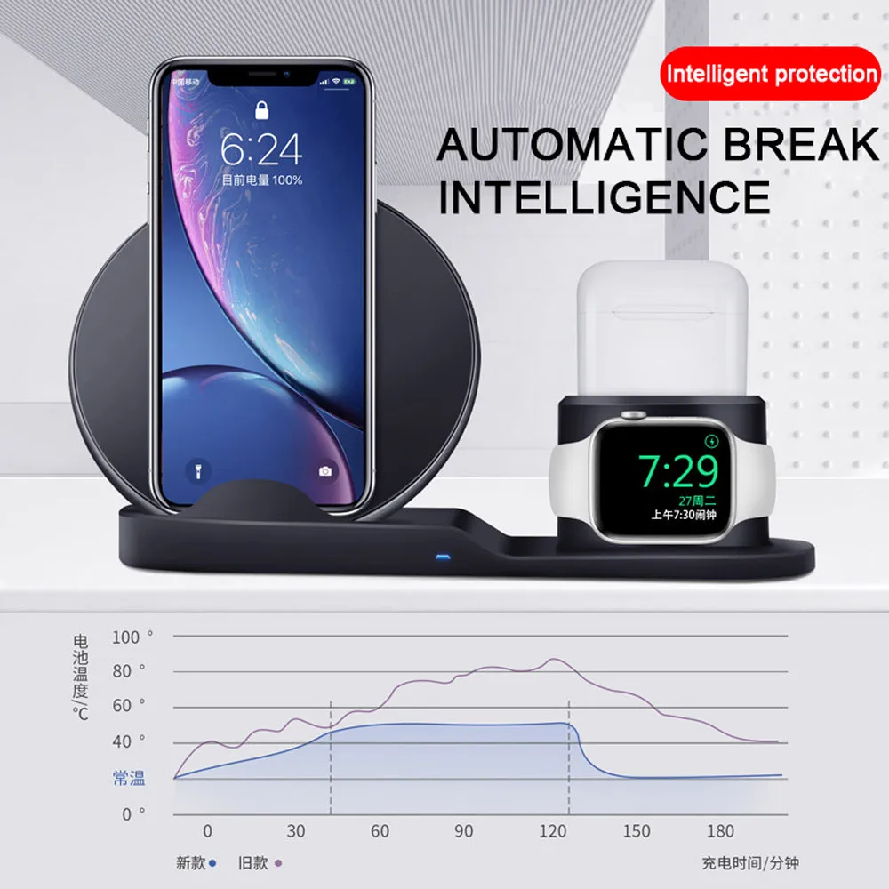 Best Product 3 IN 1 Best Wireless Charger Stand for iPhone 11 Pro Max 8 AirPods Watch Series 4/3 QC3.0 Fast Char