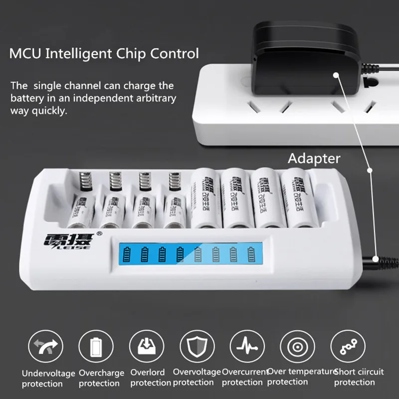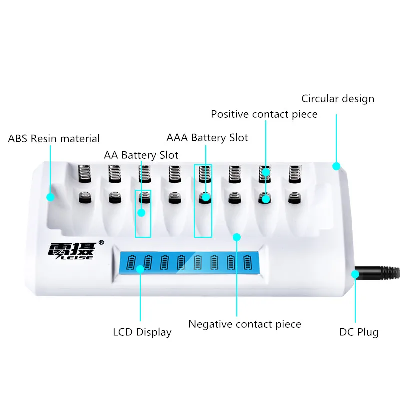Leise 8Slots Battery Charger For AA AAA Ni-CD Ni-MH 2a 3a Rechargeable Battery Quick Charging Indicate Light Intelligent Cut-off