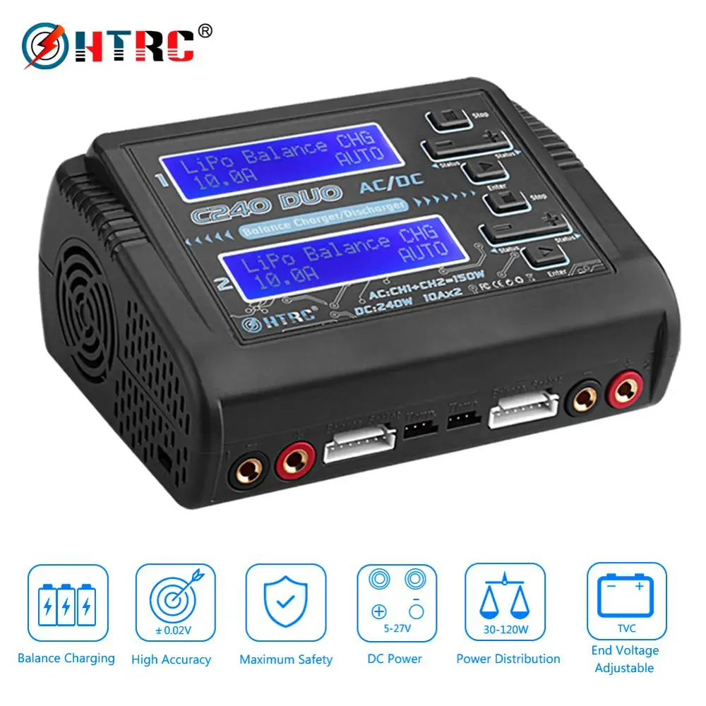 HTRC Discharger Battery Charger Touch Screen T240 Duo AC 150W DC 240W 10A Dual Channel Lipo Balance Charger for RC Model Toys